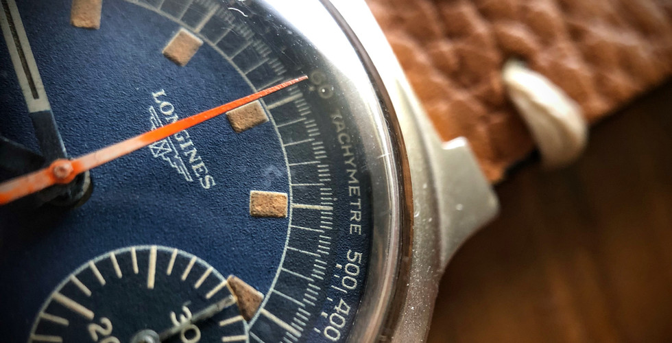 A bright orange chronograph hand (it's a little aged on this example) keeps your eye where it's supposed to. But if you're looking to tell the time with this watch, Longines makes it easy with broad white hands which a thin slit of lume.